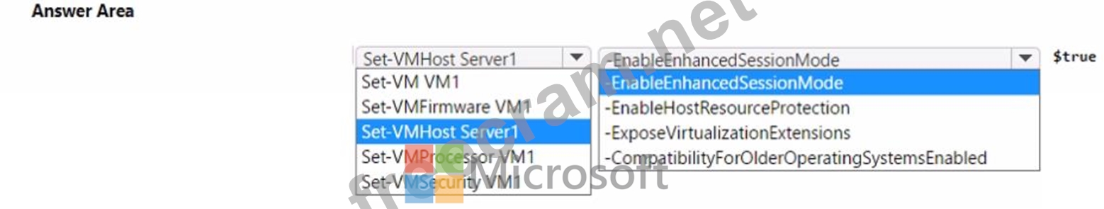 You have a server named Server1 that runs Windows Server and has the Hyper-V server role installed. Server1 contains a virtual machine named VM1 that runs Windows Server.