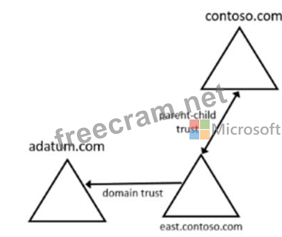 Your network contains two Active Directory forests and a domain trust as shown in the following exhibit.
