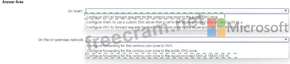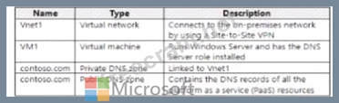 You have an onpremises DNS server named Server1 that runs Windows Server. Server 1 hosts a DNS zone named fabrikam.com You have an Azure subscription that contains the resources shown in the following table.
