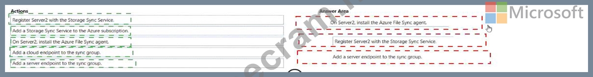 You have an Azure Storage account named storage1 that contains a file share named share'. Server1 syncs with share1 by using Azure File Sync You need to configure Server2 to sync with share1.