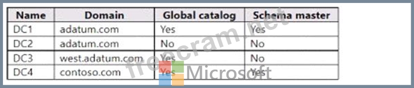 The forests contain the domain controllers shown in the following table.