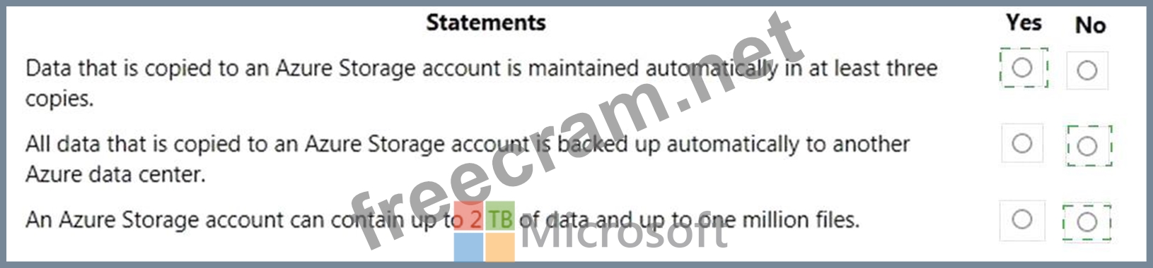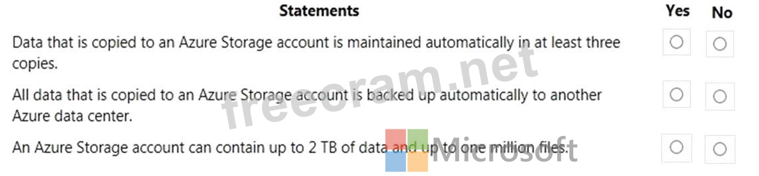 For each of the following statements, select Yes if the statement is true. Otherwise, select No.