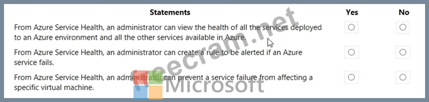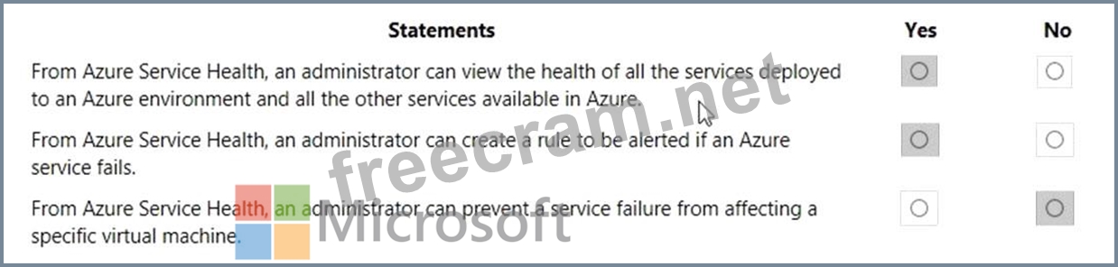 For each of the following statements, select Yes if the statement is true. Otherwise, select No.