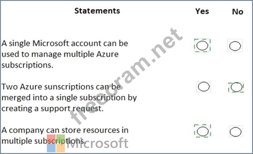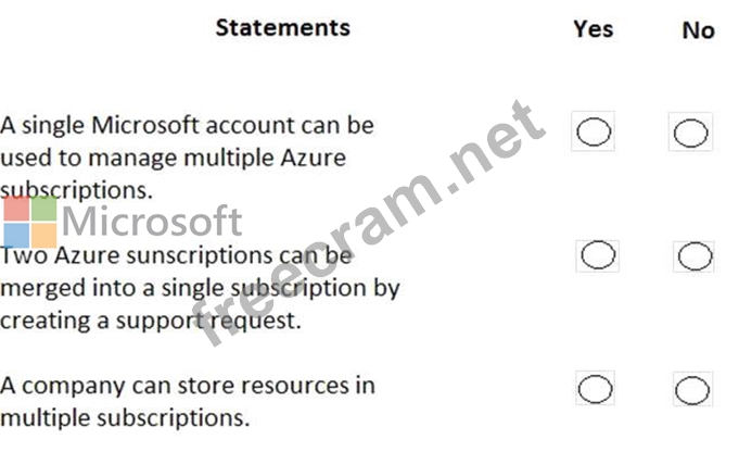 For each of the following statements, select Yes if the statement is true. Otherwise, select No.