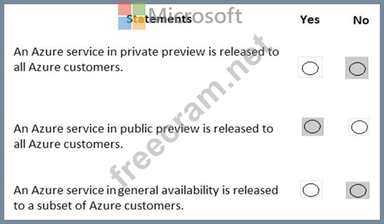 For each of the following statements, select Yes if the statement is true. Otherwise, select No.