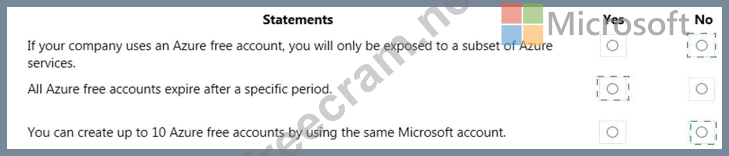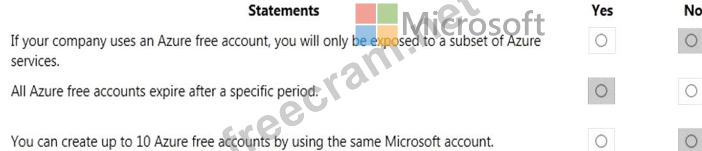 For each of the following statements, select Yes if the statement is true. Otherwise, select No.