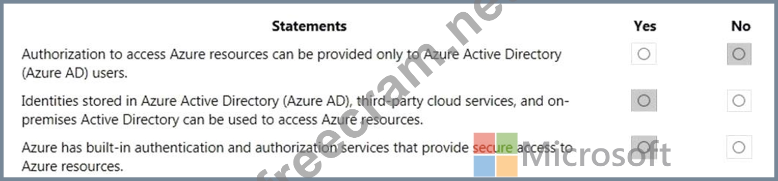 For each of the following statements, select Yes if the statement is true. Otherwise, select No.
