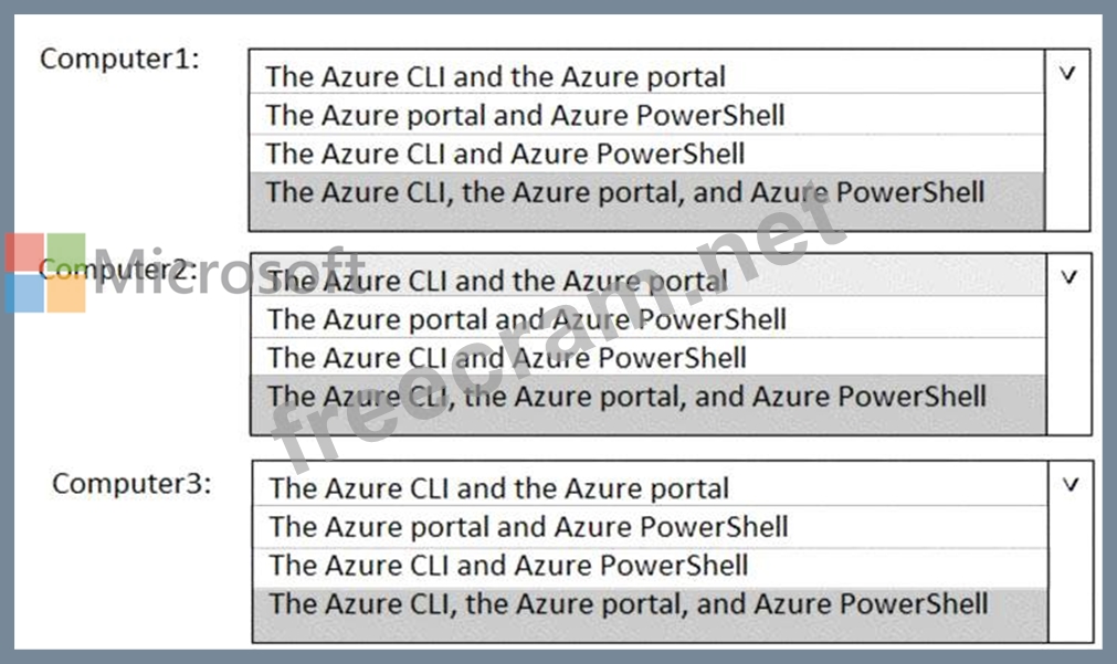 You need to identify which Azure management tools can be used from each computer.