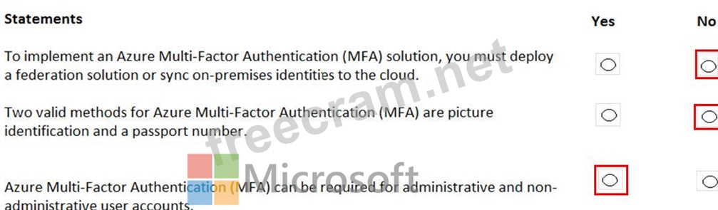 For each of the following statements, select Yes if the statement is true. Otherwise, select No.