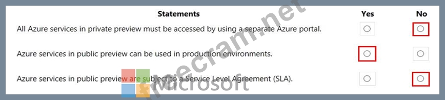 For each of the following statements, select Yes if the statement is true. Otherwise, select No.