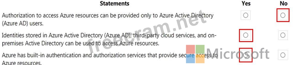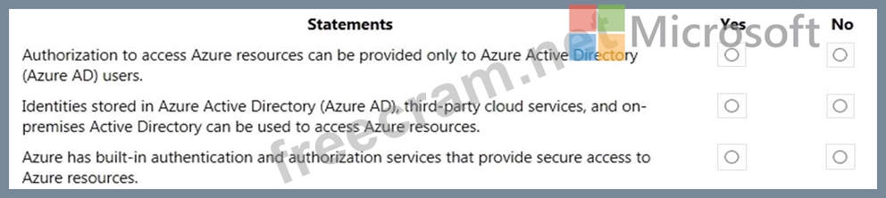 For each of the following statements, select Yes if the statement is true. Otherwise, select No.