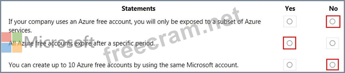 For each of the following statements, select Yes if the statement is true. Otherwise, select No.