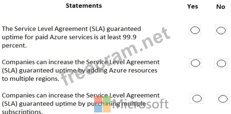 For each of the following statements, select Yes if the statement is true. Otherwise, select No.