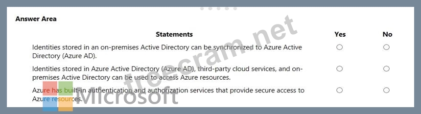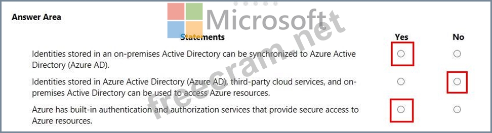 For each of the following statements, select Yes if the statement is true. Otherwise, select No. NOTE: Each correct selection is worth one point.