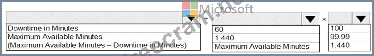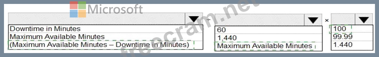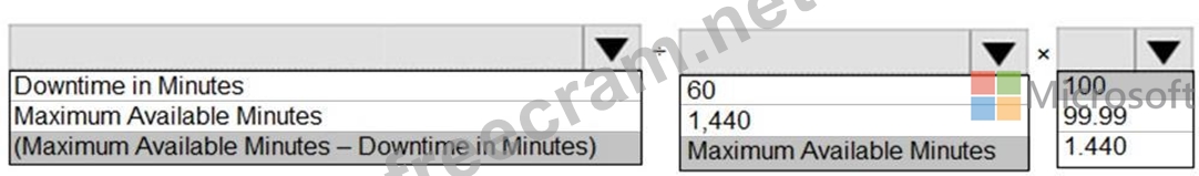 How should you calculate the monthly uptime percentage? To answer, select the appropriate options in the answer area.