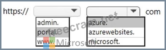 To which URL should you connect to manage all the Azure resources? To answer, select the appropriate options in the answer area.