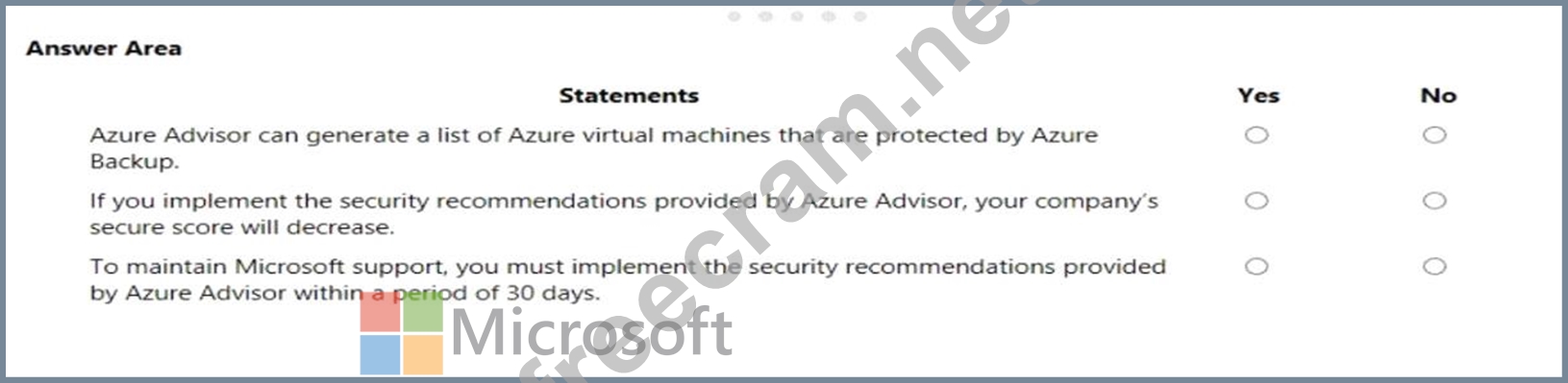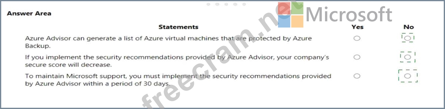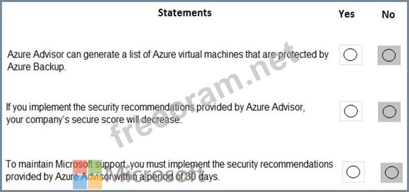For each of the following statements, select Yes if the statement is true. Otherwise, select No. NOTE: Each correct selection is worth one point.