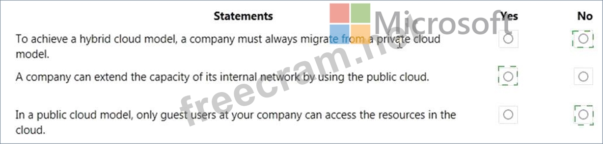 For each of the following statements, select Yes if the statement is true. Otherwise, select No.