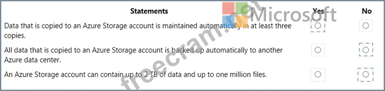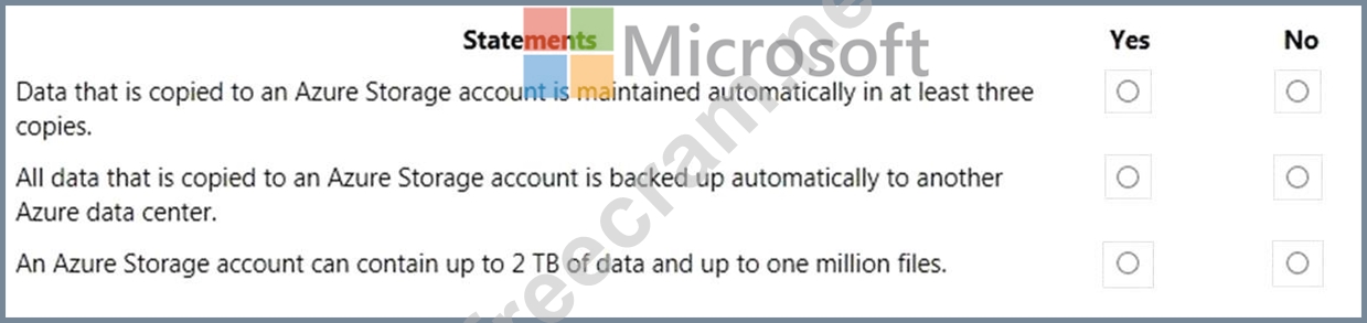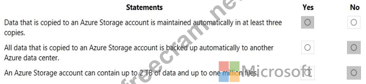 For each of the following statements, select Yes if the statement is true. Otherwise, select No.