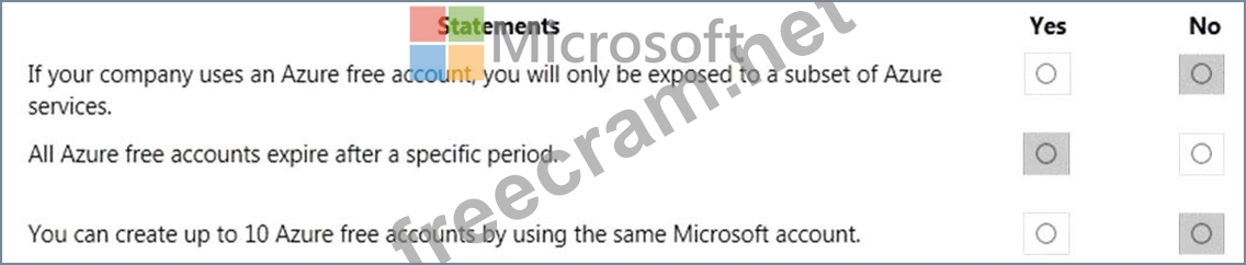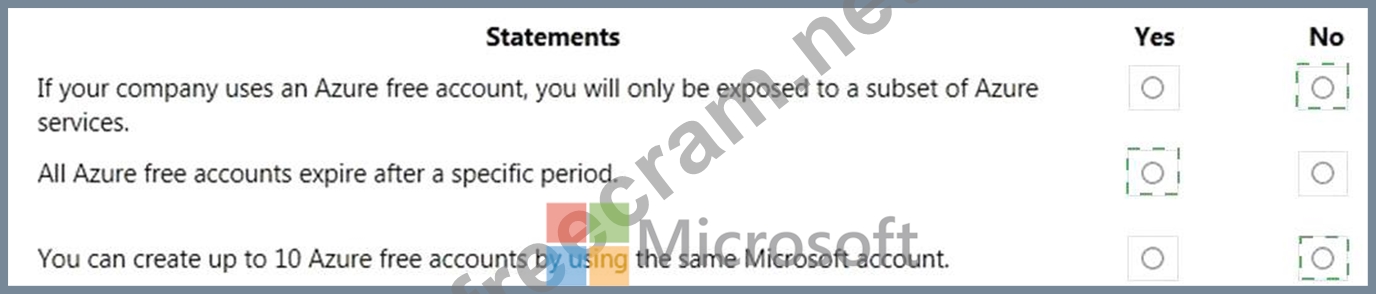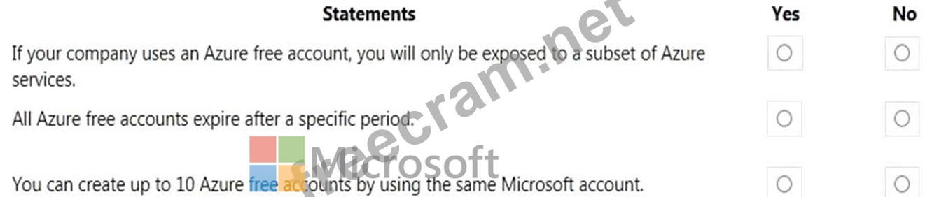For each of the following statements, select Yes if the statement is true. Otherwise, select No.