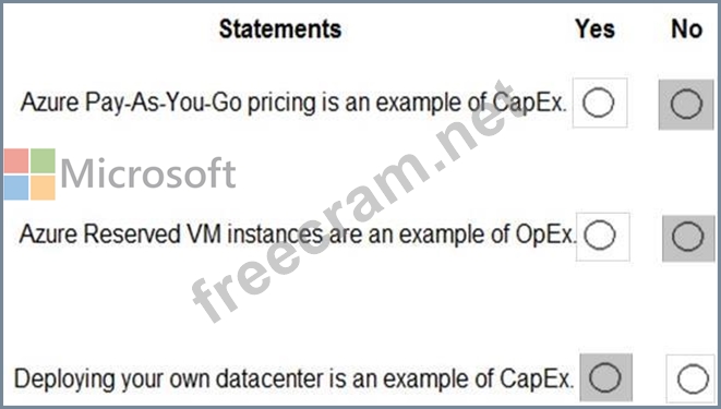 For each of the following statements, select Yes if the statement is true. Otherwise, select No. NOTE: Each correct selection is worth one point.