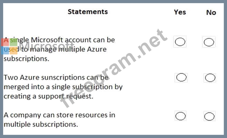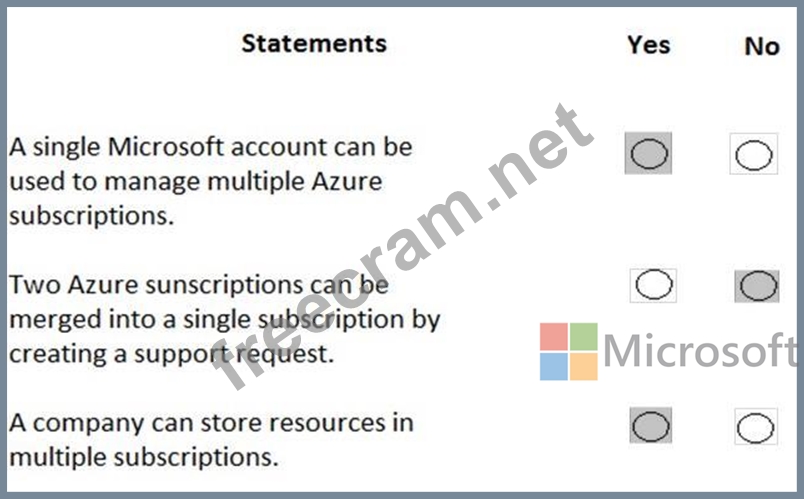 For each of the following statements, select Yes if the statement is true. Otherwise, select No.