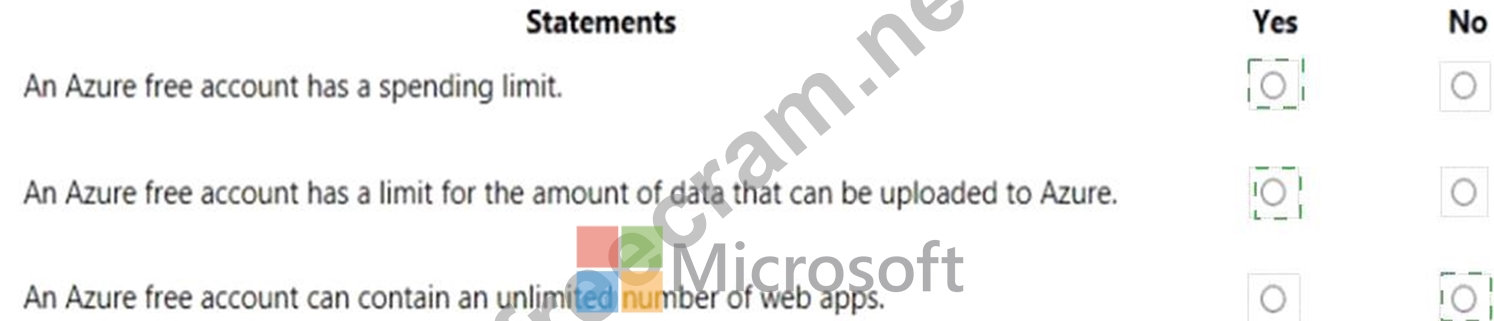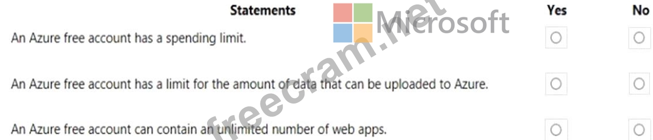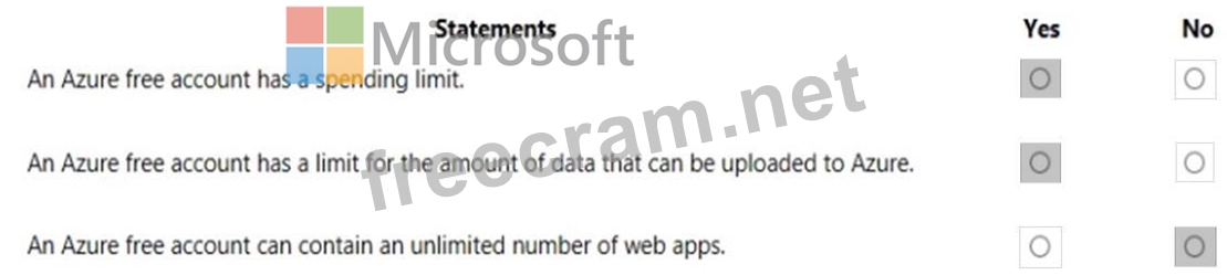 For each of the following statements, select Yes if the statement is true. Otherwise, select No.