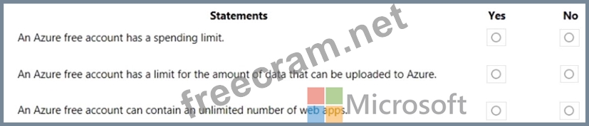 For each of the following statements, select Yes if the statement is true. Otherwise, select No.