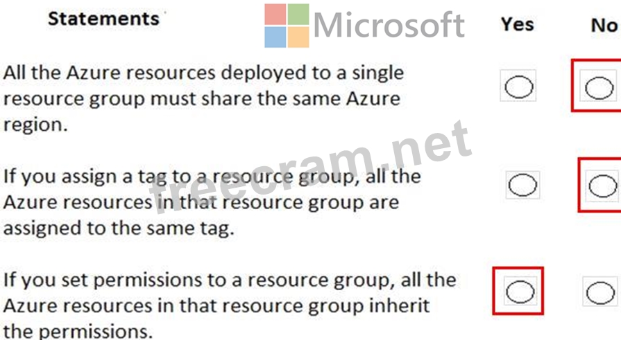 For each of the following statements, select Yes if the statement is true. Otherwise, select No.