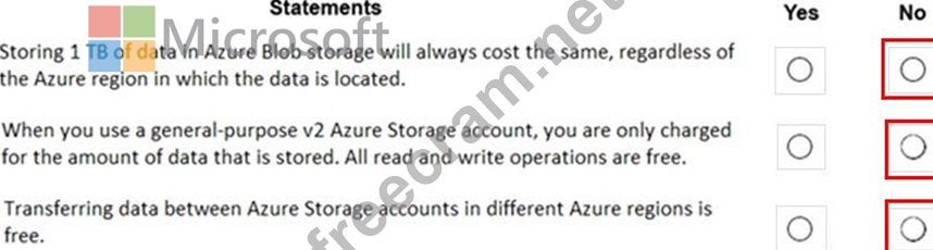 For each of the following statements, select Yes if the statement is true. Otherwise, select No.