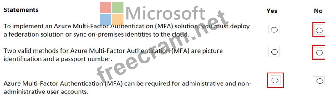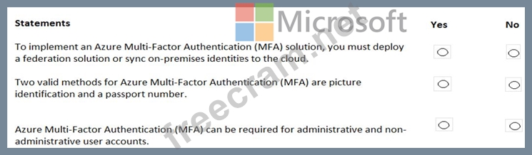 For each of the following statements, select Yes if the statement is true. Otherwise, select No.