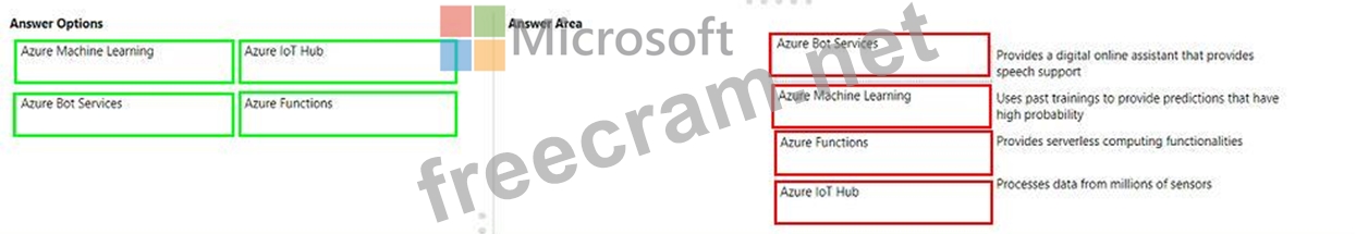 Instructions: To answer, drag the appropriate Azure service from the column on the left to its description on the right. Each service may be used once, more than once, or not at all NOTE: Each correct match is worth one point.