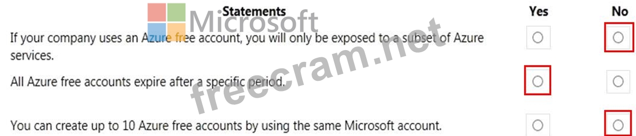 For each of the following statements, select Yes if the statement is true. Otherwise, select No.