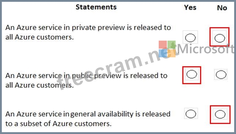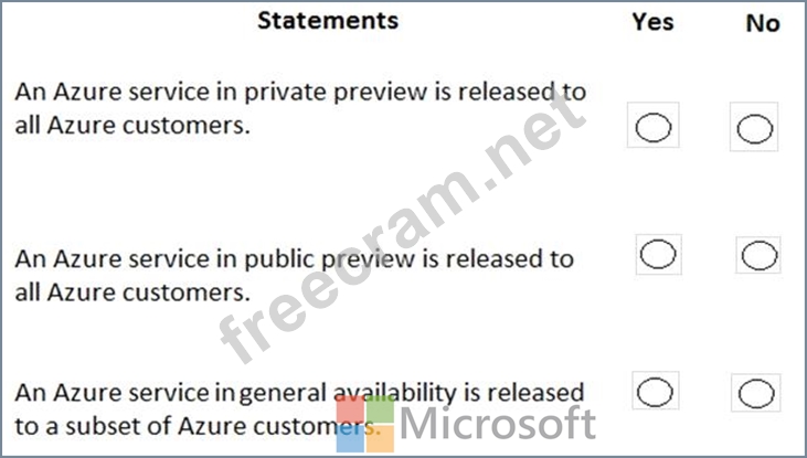 For each of the following statements, select Yes if the statement is true. Otherwise, select No.
