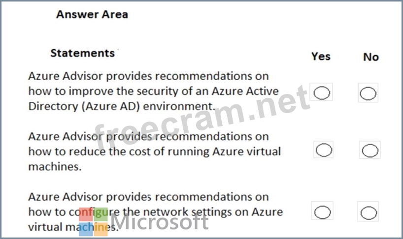 For each of the following statements, select Yes if the statement is true. Otherwise, select No. NOTE: Each correct selection is worth one point.