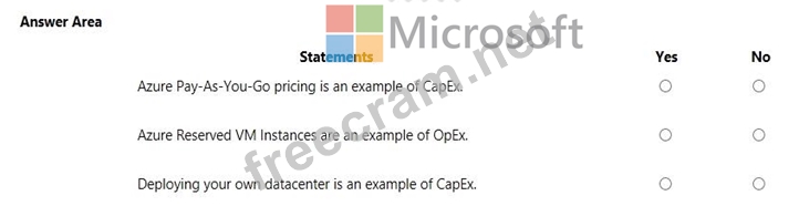 For each of the following statements, select Yes if the statement is true. Otherwise, select No. NOTE: Each correct selection is worth one point.