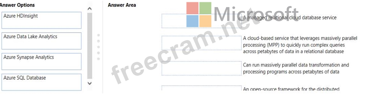 Instructions: To answer, drag the appropriate Azure service from the column on the left to its description on the right. Each service may be used once, more than once, or not at all NOTE: Each correct match is worth one point.