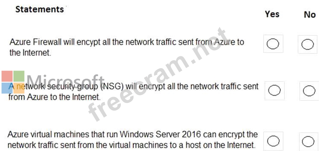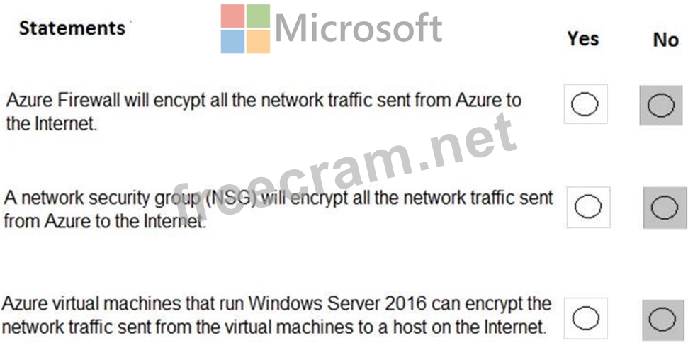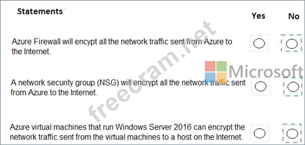 Box 3 could also be yes, because technically a Windows Server 2016 CAN encrypt the network traffic send from the VM to a host on the internet. If the VM accesses a website or maybe an application it can use SSL/TLS to encrypt the network traffic. Also a default VPN client is built into Server 2016.