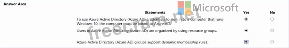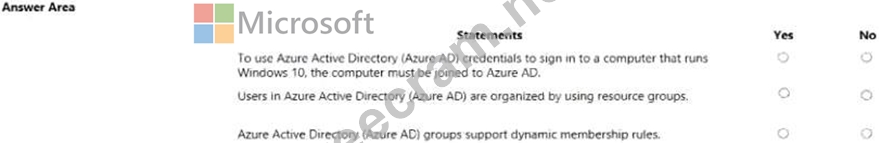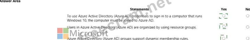 For each of the following statements, select Yes if the statement is true. Otherwise select No.