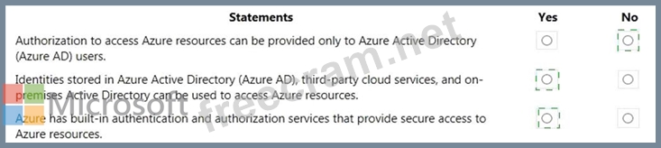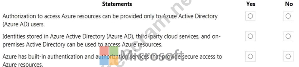 For each of the following statements, select Yes if the statement is true. Otherwise, select No.