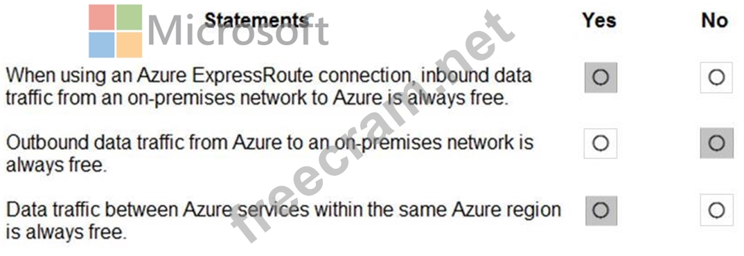 For each of the following statements, select Yes if the statement is true. Otherwise, select No.