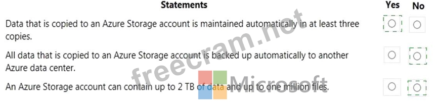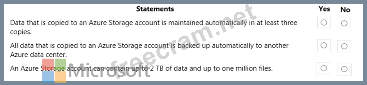 For each of the following statements, select Yes if the statement is true. Otherwise, select No.