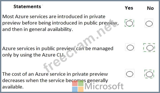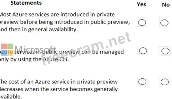 For each of the following statements, select Yes if the statement is true. Otherwise, select No.