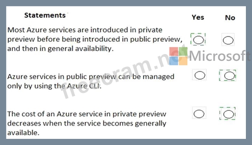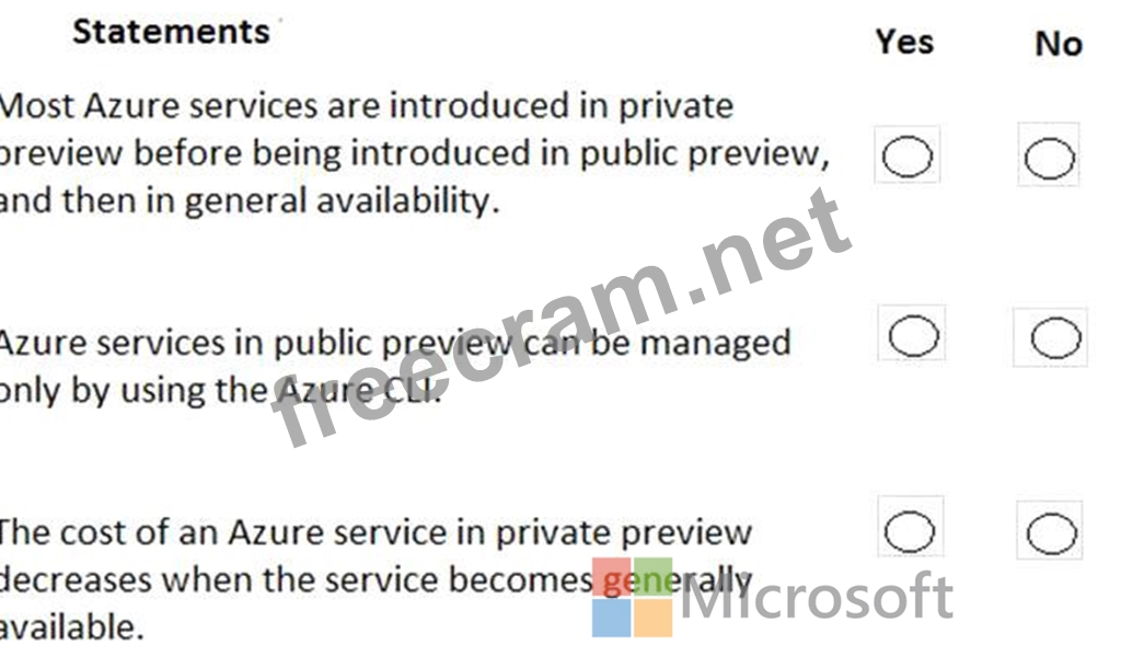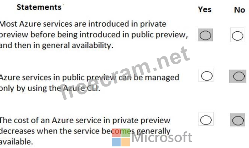 For each of the following statements, select Yes if the statement is true. Otherwise, select No.