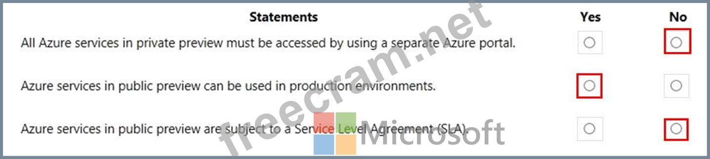 For each of the following statements, select Yes if the statement is true. Otherwise, select No.