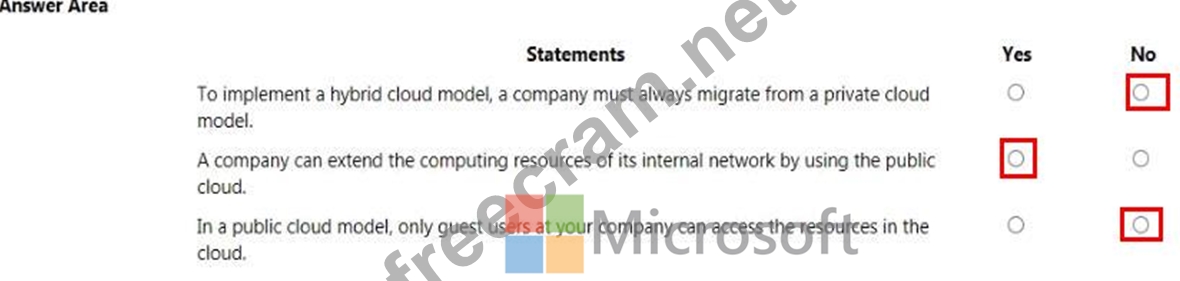For each of the following statements, select Yes if the statement is true. Otherwise, select No. NOTE: Each correct selection is worth one point.