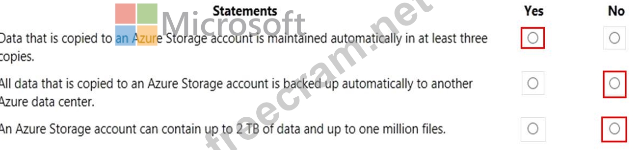 For each of the following statements, select Yes if the statement is true. Otherwise, select No.