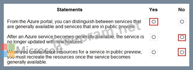 For each of the following statements, select Yes if the statement is true. Otherwise, select No.