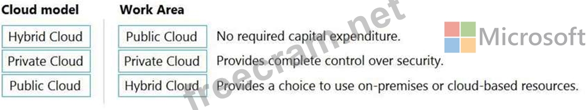 Instructions: To answer, drag the appropriate cloud model from the column on the left to its advantage on the right. Each cloud model may be used once, more than once, or not at all.