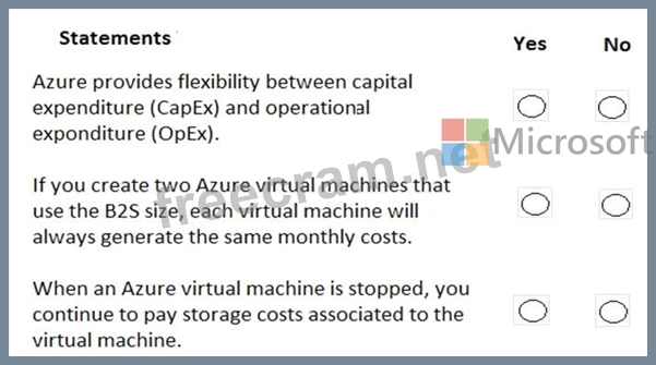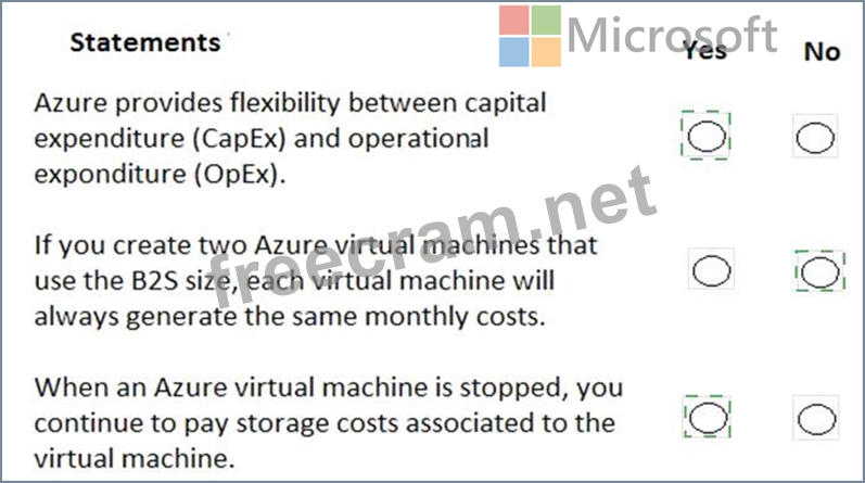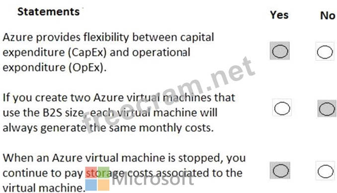 For each of the following statements, select Yes if the statement is true. Otherwise, select No.